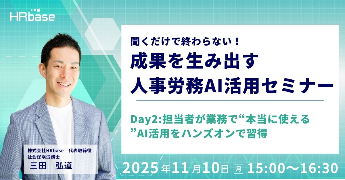 そんな企業の人事労務部門に向けて、AI活用を“教育”と“実践”の両面から学べる2日間のセミナーを開催します。