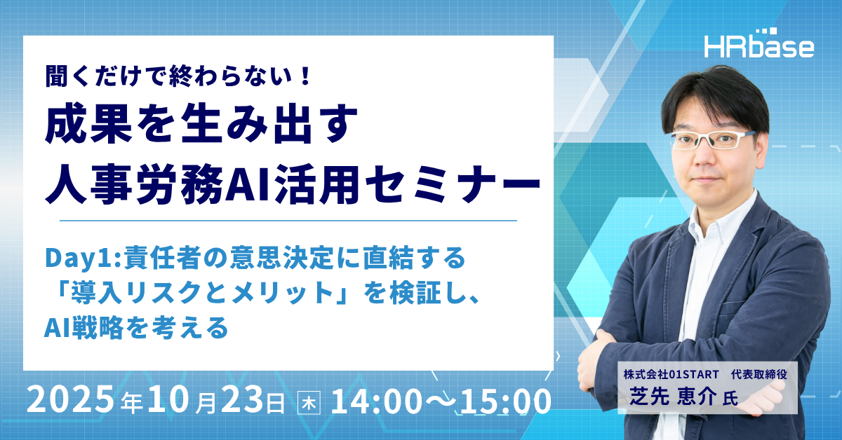 | セミナー名 | 聞くだけで終わらない!成果を生み出す人事労務AI活用セミナー~責任者の意思決定に直結する「導入リスクとメリット」を検証し、AI戦略を考える~ |