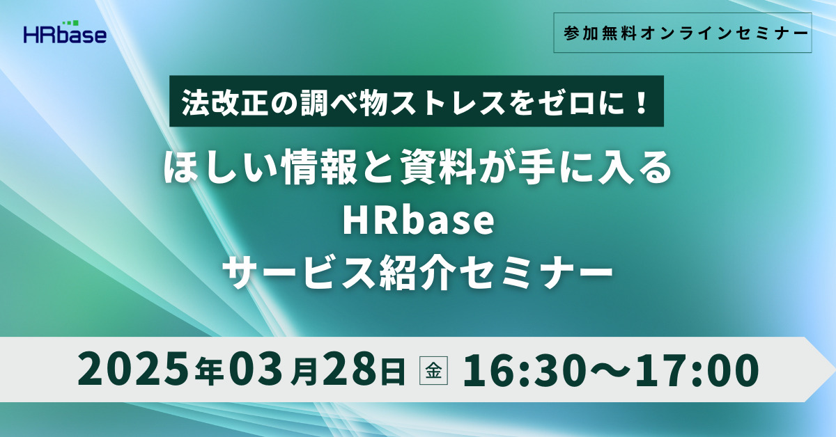 本セミナーでは、人事労務担当者の皆さまが効率的に法改正へ対応できるツール 「HRbase」 を活用した実務対応をご紹介します。